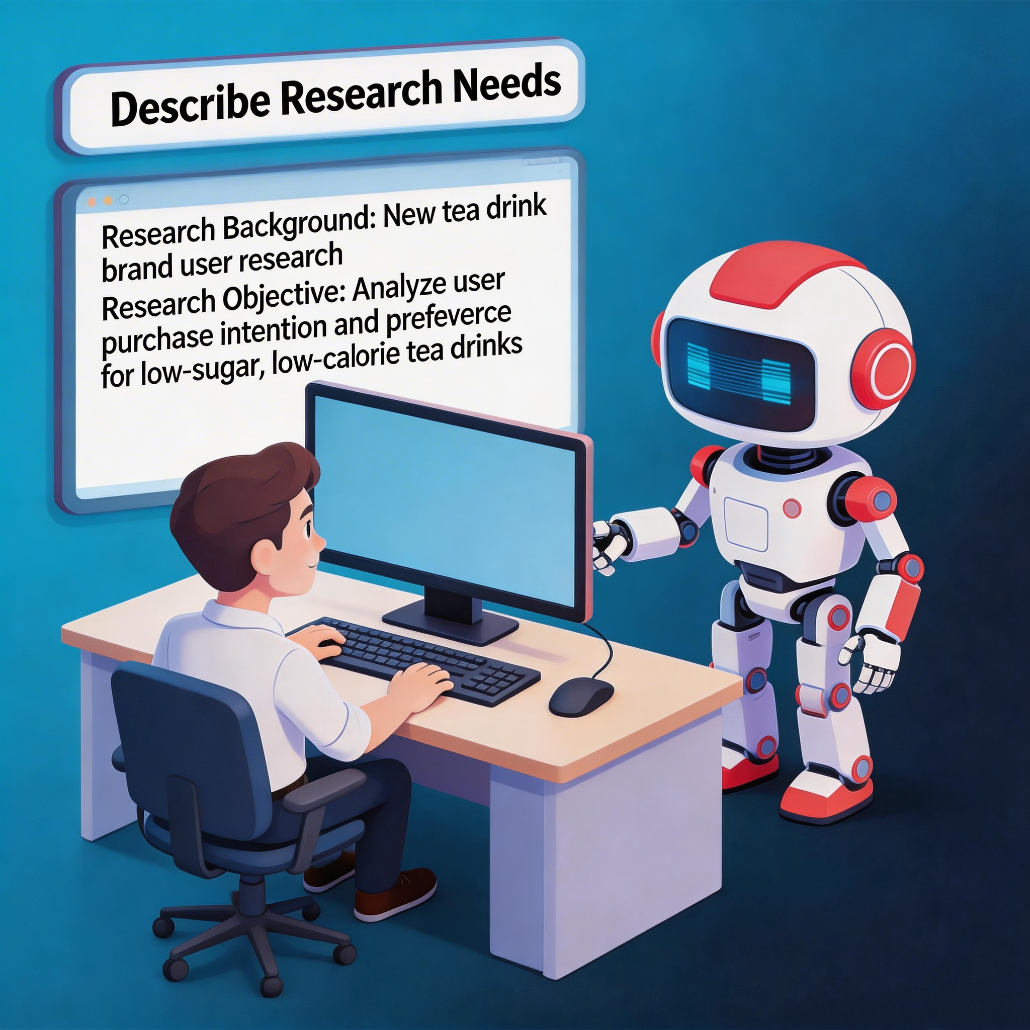 三步完成从需求描述到洞察建议的全链路 AI 调研体验: